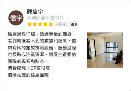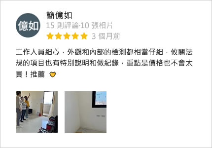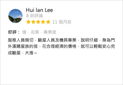 我們是一群在相關行業領域有著多年的實務經驗背景,同時也具備第三方認證專業的團隊,曾交屋驗收超過上千件住宅經驗,協助多位屋主順利入住,透過專業的科技儀器設備檢測房屋問題,依房屋現況找出房屋缺失,協助屋主順利驗收交屋,提供完整的前後諮詢與專業服務,秉持第三方公正立場的專業、熱情、認真的態度,為屋主層層把關,爭取相關應有的權利。